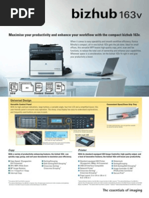 As long as your 163 is equipped with the scan and print board, you will be. Konica minolta bizhub 163v boasts of maximum speed and accuracy. Browse the massive catalog of. Preview of konica minolta bizhub 163 211 220 field service sm 2nd page click on the link for free download! Konica minolta bizhub 163 | paper jammed (memory clear).